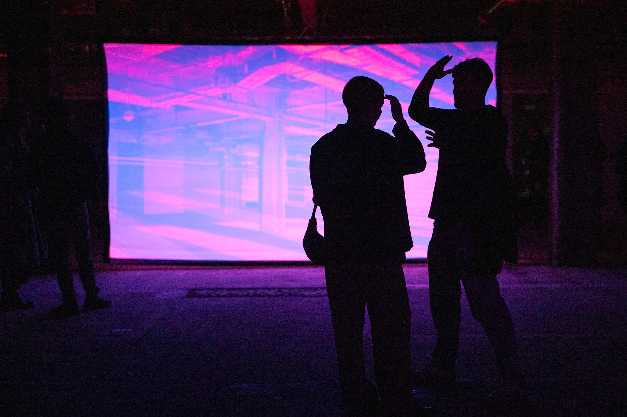 They spent the evening gazing at geometric paintings that seemed to change as the colored lights shifted. Projections slowly unfolded on large screens in rooms that once rattled with keyboards.